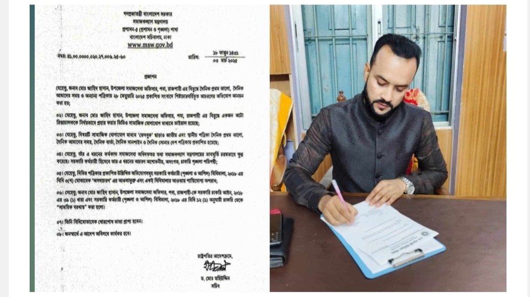 এতে বলা হয়েছে, রিকশাচালককে নির্দয়ভাবে প্রহার করার ভিডিও সামাজিক মাধ্যমে ভাইরাল হয়েছে এবং বিষয়টি নিয়ে গণমাধ্যমে সংবাদ প্রকাশ হয়েছে। এ ধরনের আচরণ সমাজকল্যাণ মন্ত্রণালয় ও সমাজকল্যাণ অধিদপ্তরের ভাবমূর্তি চরমভাবে ক্ষুণ্ন করেছে। সরকারি কর্মচারী হিসেবে তার এ ধরনের আচরণ অশোভনীয়, অসংগত, চাকরি শৃঙ্খলা পরিপন্থী এবং শাস্তিযোগ্য অপরাধ বলে গন্য হবে।