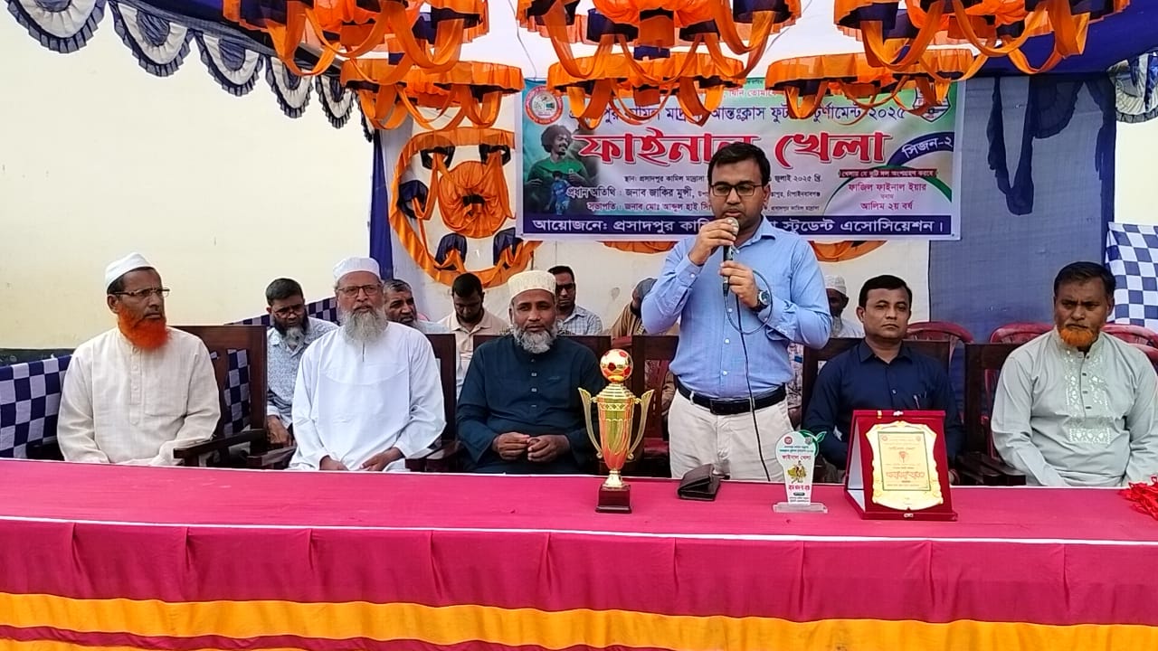 বৃহস্পতিবার সকালে রহনপুর কলেজ মোড় প্রসাদপুর কামিল মাদ্রাসা মাঠ প্রাঙ্গণে প্রসাদপুর কামিল মাদ্রাসা স্টুডেন্ট এসোসিয়েশনের আয়োজনে প্রসাদপুর কামিল মাদ্রাসার অধ্যক্ষ আব্দুল হাই সিদ্দিকী কামাল এর সভাপতিত্বে এ খেলা অনুষ্ঠিত হয়।