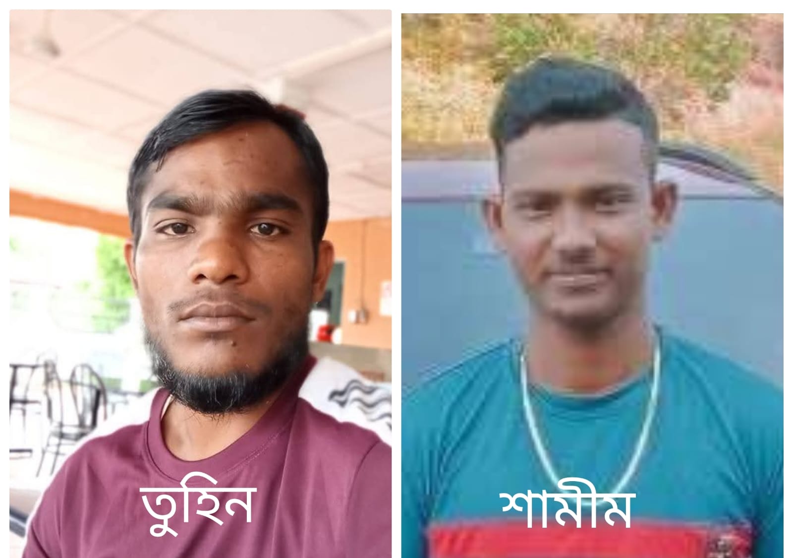 নিহতরা হলেন- গোমস্তাপুর উপজেলার গোমস্তাপুর সদর ইউনিয়নের গোপালনগর গ্রামের শুকুরুদ্দিন কালুর ছেলে ২৫বছর বয়সী তুহিন আলী এবং ওই ইউনিয়নের নসিবন্দি নগর গ্রামের মো. কাবিলের ২৩বছর বয়সী ছেলে মো. শামিম রেজা। তারা দুজনই মালেশিয়ার একটি পাম বাগানে কাজ করতেন।