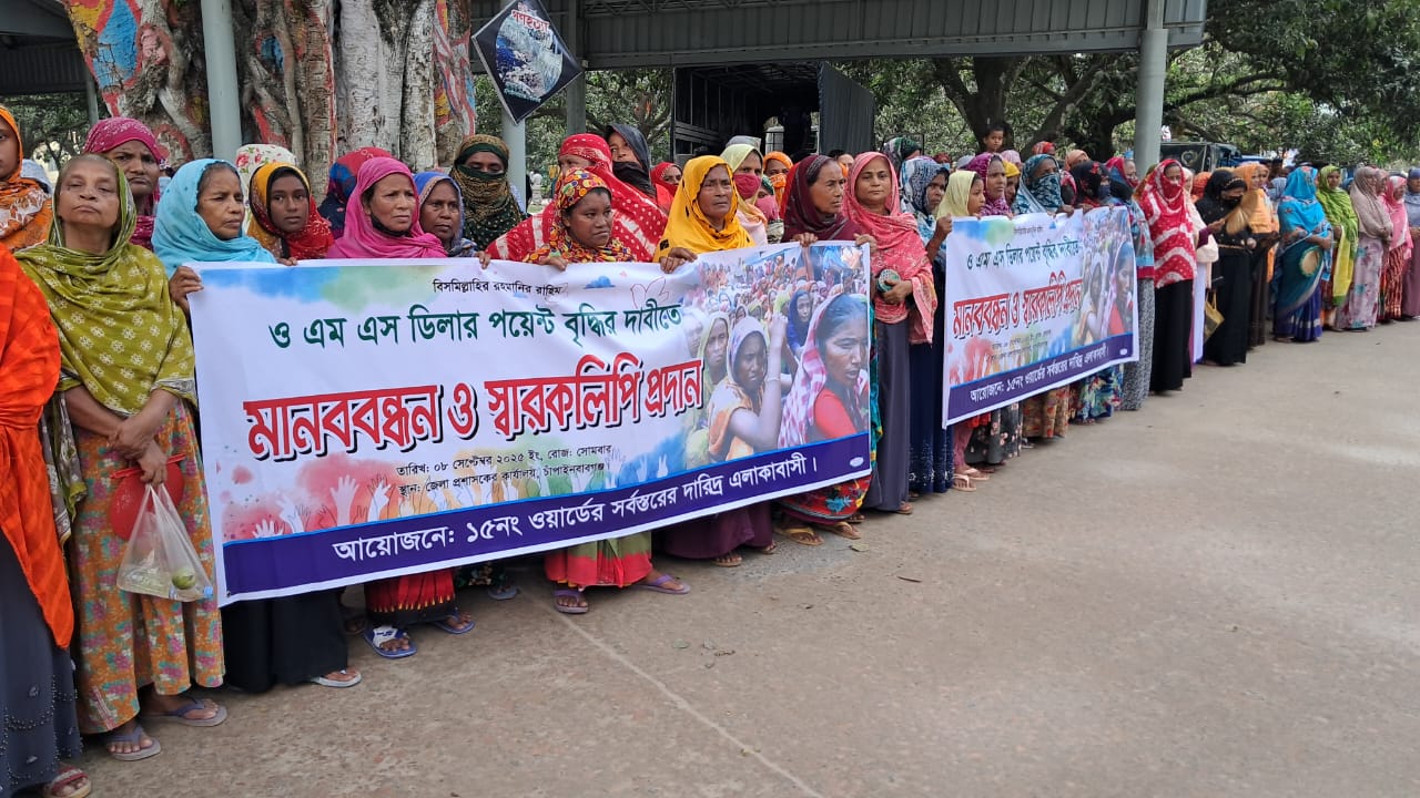 মানববন্ধনে বক্তারা বলেন, ১৫ নম্বর ওয়ার্ডের বাসিন্দারা নিম্ন আয়ের ও এই এলাকাটি প্রচুর ঘনবসতি। এছাড়াও একটি ওয়ার্ডেই রয়েছে ৪টি বস্তি। প্রায় ২৩ হাজার মানুষের বসবাস হলেও খাদ্যবান্ধব কর্মসূচি ওপেন মার্কেট সেল বা ওএমএস’র সুবিধা পায় মাত্র ২০০ পরিবার। এর আগে এই ওয়ার্ডে দীর্ঘদিন ধরে ৪ জন ডিলার ওএমএসের চাল-আটা বিতরণ করেছিল। কিন্তু হঠাৎ করেই একজন ডিলার নির্ধারণ করা হয়েছে। এতে প্রচুর জনদুর্ভোগ দেখা দিয়েছে। কম আয়ের হতদরিদ্র মানুষরা বেকায়দায় পড়েছে। তাই দ্রুত ডিলার পয়েন্ট বৃদ্ধি করতে হবে।