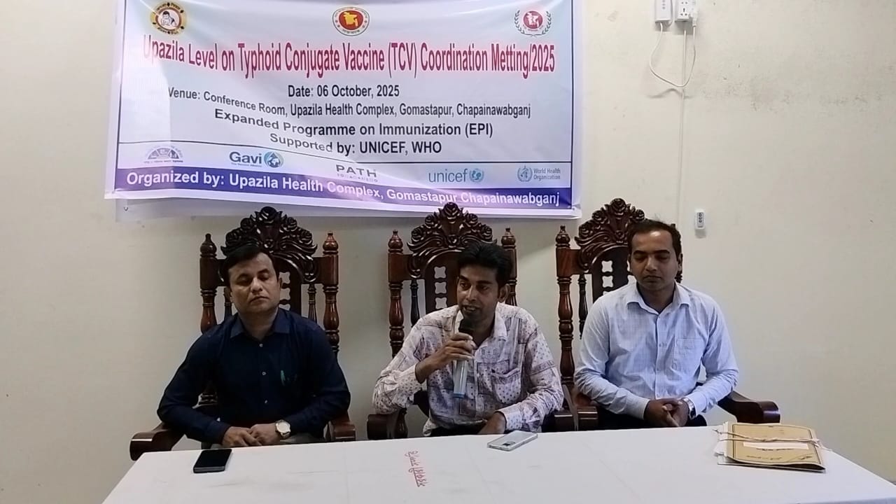 চাঁপাইনবাবগঞ্জের গোমস্তাপুর উপজেলা স্বাস্থ্য কমপ্লেক্সের আয়োজনে টাইফয়েড কনজুগেট ভ্যাকসিন (TCV) সংক্রান্ত উপজেলা পর্যায়ের সমন্বয় সভা অনুষ্ঠিত হয়েছে।
