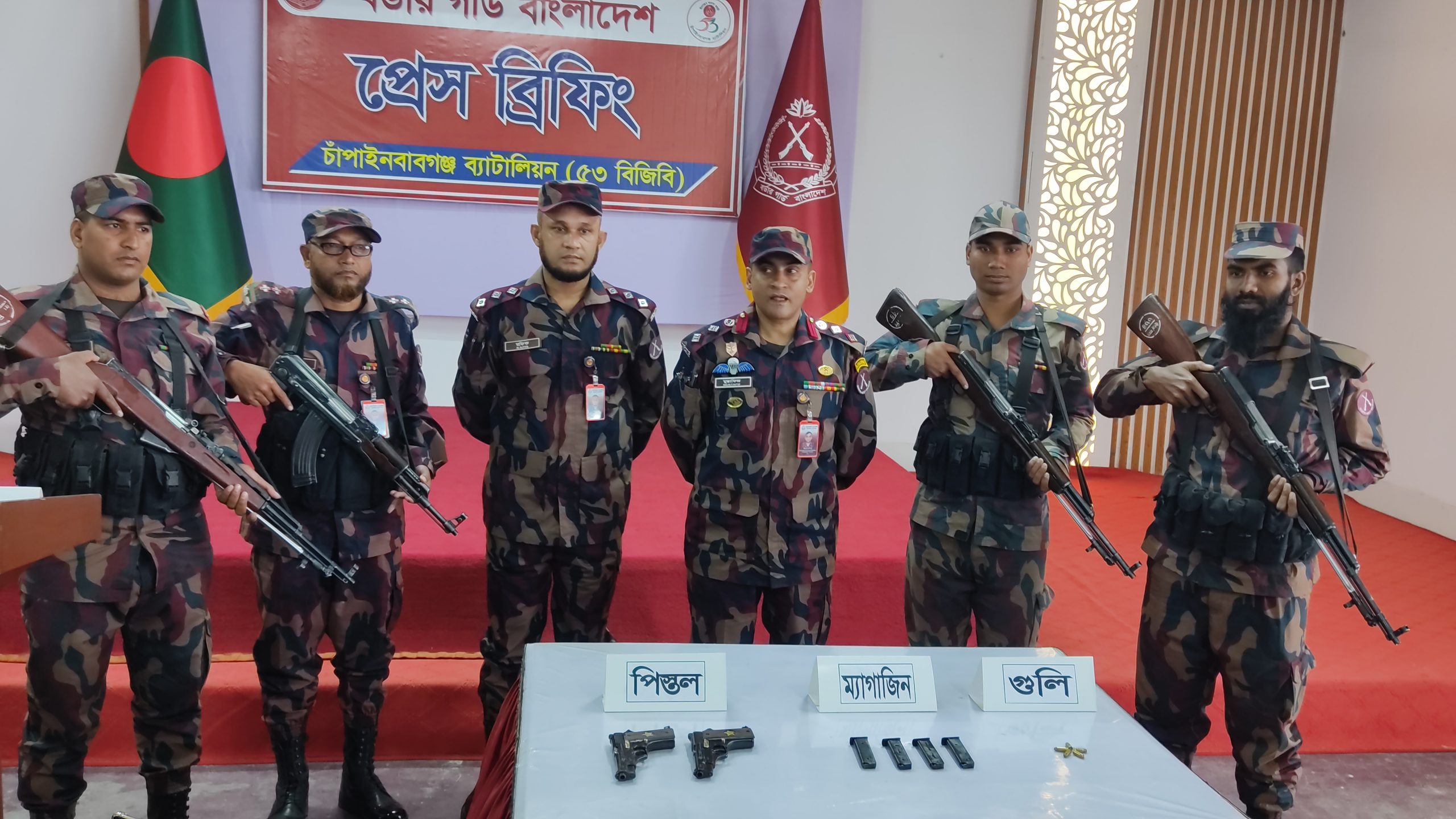 এর আগে ১৫ ডিসেম্বর বিজিবির ৫৩ ব্যাটালিয়নের সদস্যরা শিবগঞ্জ উপজেলার গোপালপুর থেকে আরও ৪টি বিদেশি পিস্তল, ৯টি ম্যাগাজিন এবং ২৪ রাউন্ড গুলি