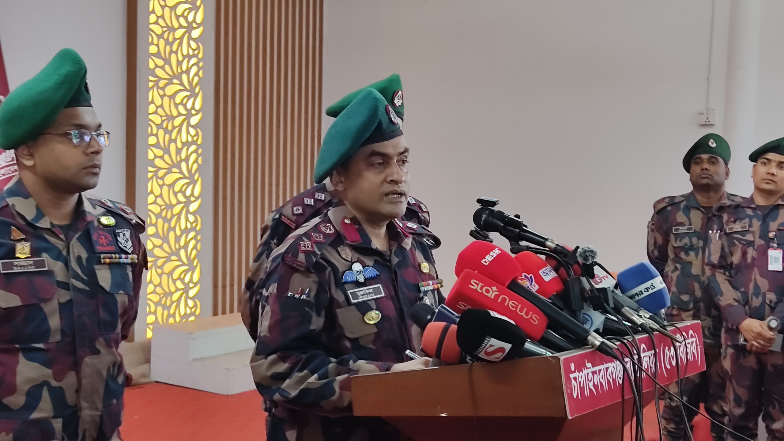রবিবার বিকেল সাড়ে ৩টার দিকে চাঁপাইনবাবগঞ্জ ৫৩ বিজিবি ব্যাটলিয়নের সদর দপ্তরে সংবাদ সম্মেলনের এ তথ্য জানান অত্র ব্যাটালিয়নের অধিনায়ক লে.কর্ণেল মুস্তাফিজুর রহমান।