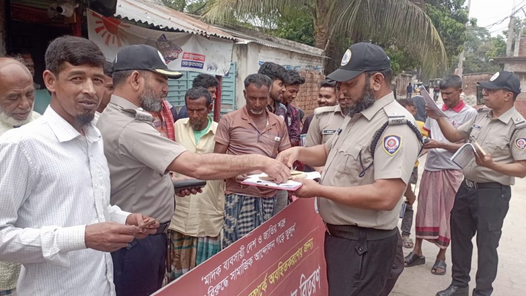 চাঁপাইনবাবগঞ্জে মাদকের বিরুদ্ধে জনসচেতনতামূলক পথসভা ও লিফলেট বিতরণ