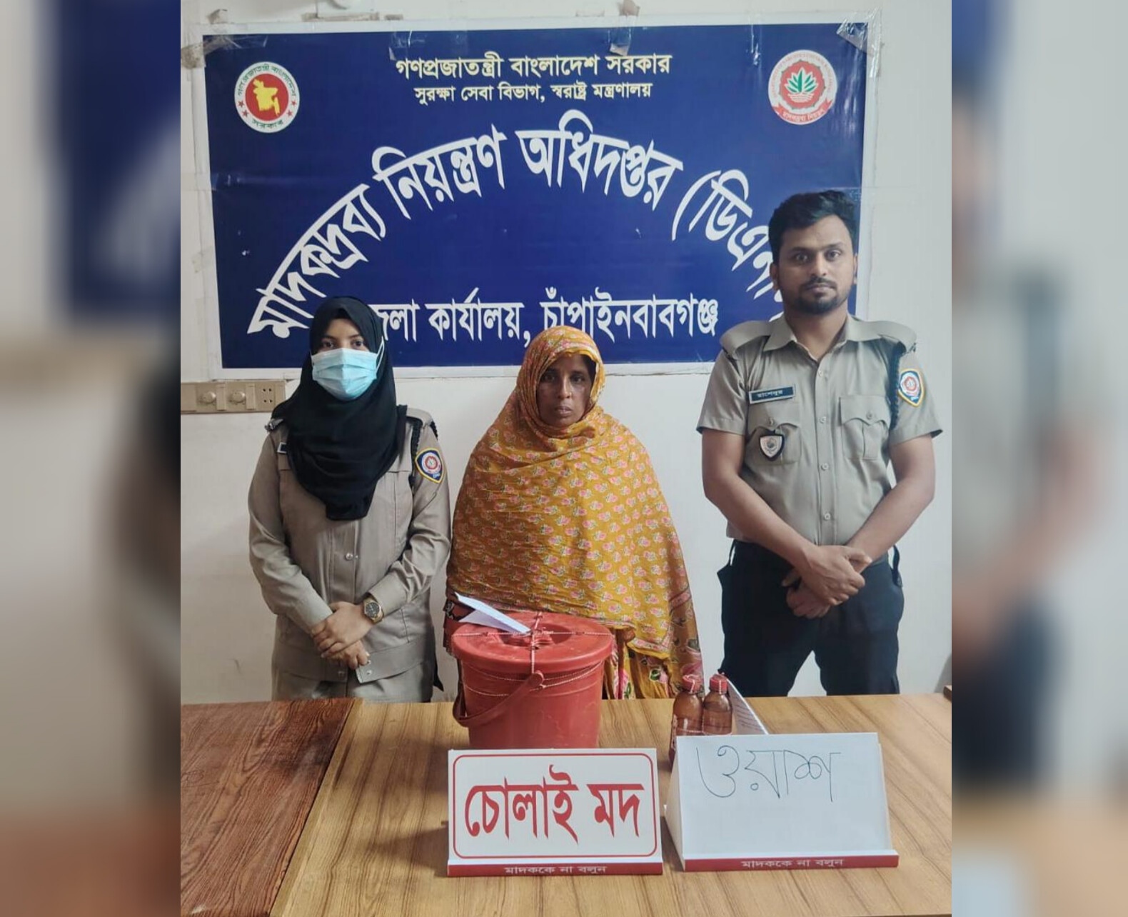 চাঁপাইনবাবগঞ্জে বিপুল পরিমাণ মাদক তৈরির সরঞ্জাম (ওয়াশ) ও চোলাইমদসহ এক নারীকে গ্রেফতার করেছে জেলা মাদকদ্রব্য নিয়ন্ত্রণ অধিদপ্তর (ডিএনসি)