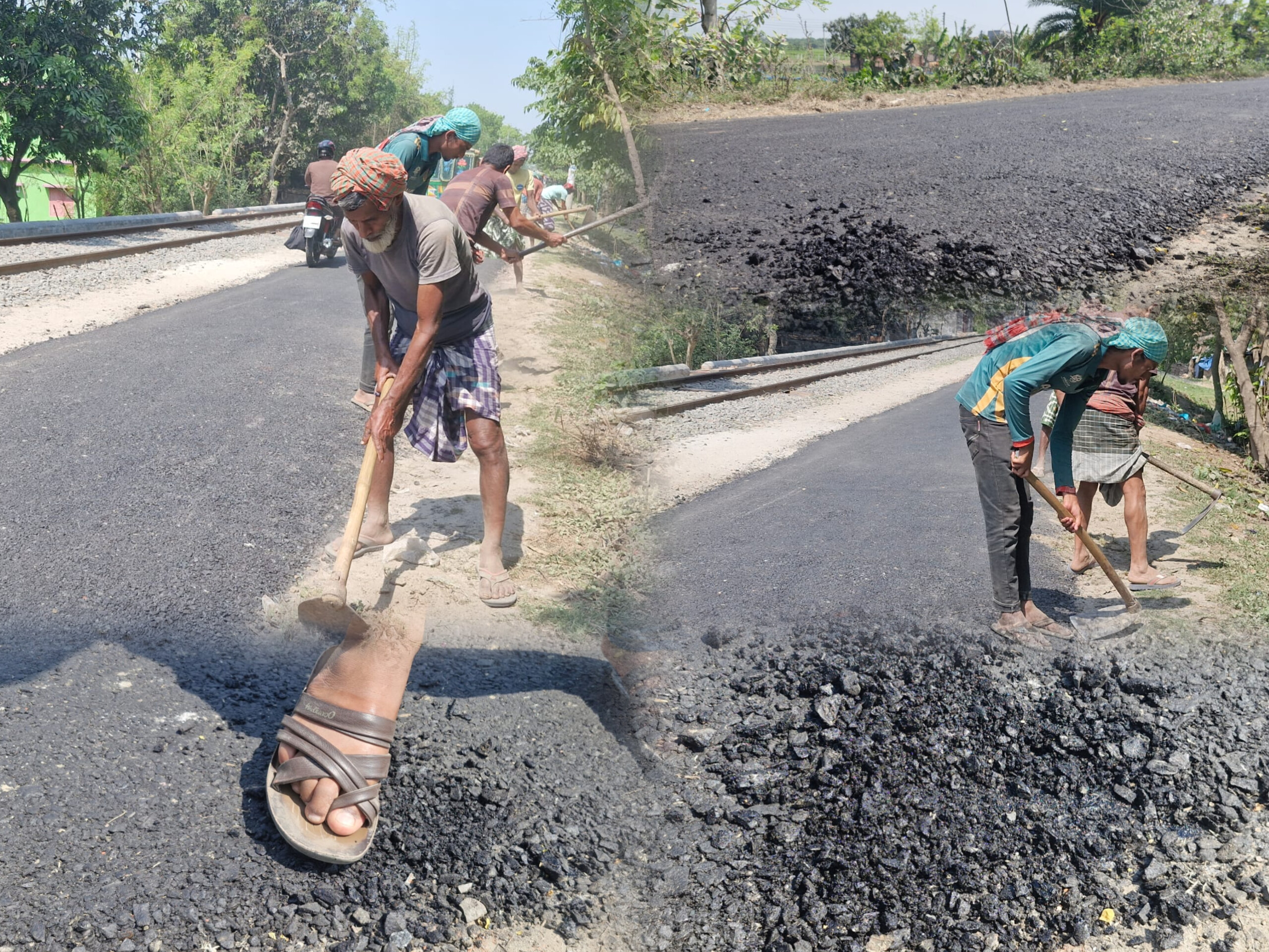 অন্যদিকে, মহাডাঙ্গা থেকে আলীনগর রেলগেইটের একাধিক অংশে কাজ শেষের দুদিন পরেও হাতের টানেই পিচ কার্পেটিং উঠতে দেখা যায়। শনিবার (০৪ এপ্রিল) সকালে হাজির মোড় ও মহাডাঙ্গা রেল লাইন সংলগ্ন এলাকায় হাত ও পায়ের চাপে সড়কের পিচ কার্পেটিং উঠায় স্থানীয় তরুণ-যুবকরা।