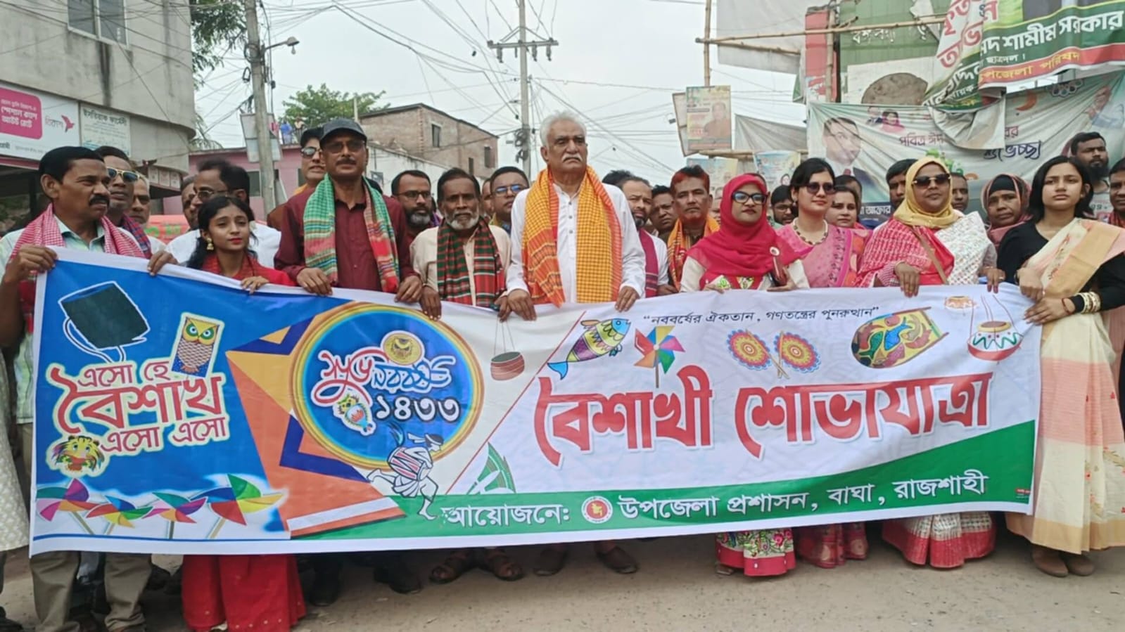 বাঘা উপজেলা প্রশাসনের আয়োজনে ০১লা বৈশাখ ১৪৩৩ বঙ্গাব্দ (১৪ এপ্রিল ২০২৬ খ্রিস্টাব্দ) উপজেলা চত্বরে বটমূলে দিনব্যাপী এ আয়োজন সম্পন্ন হয়।